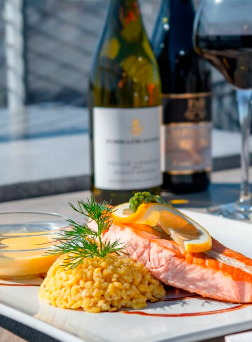 Café Sundet ligger midt i Øresund, panoramavinduer med unik udsigt over Øresund. Du kan både booke bord eller bestille takeaway.